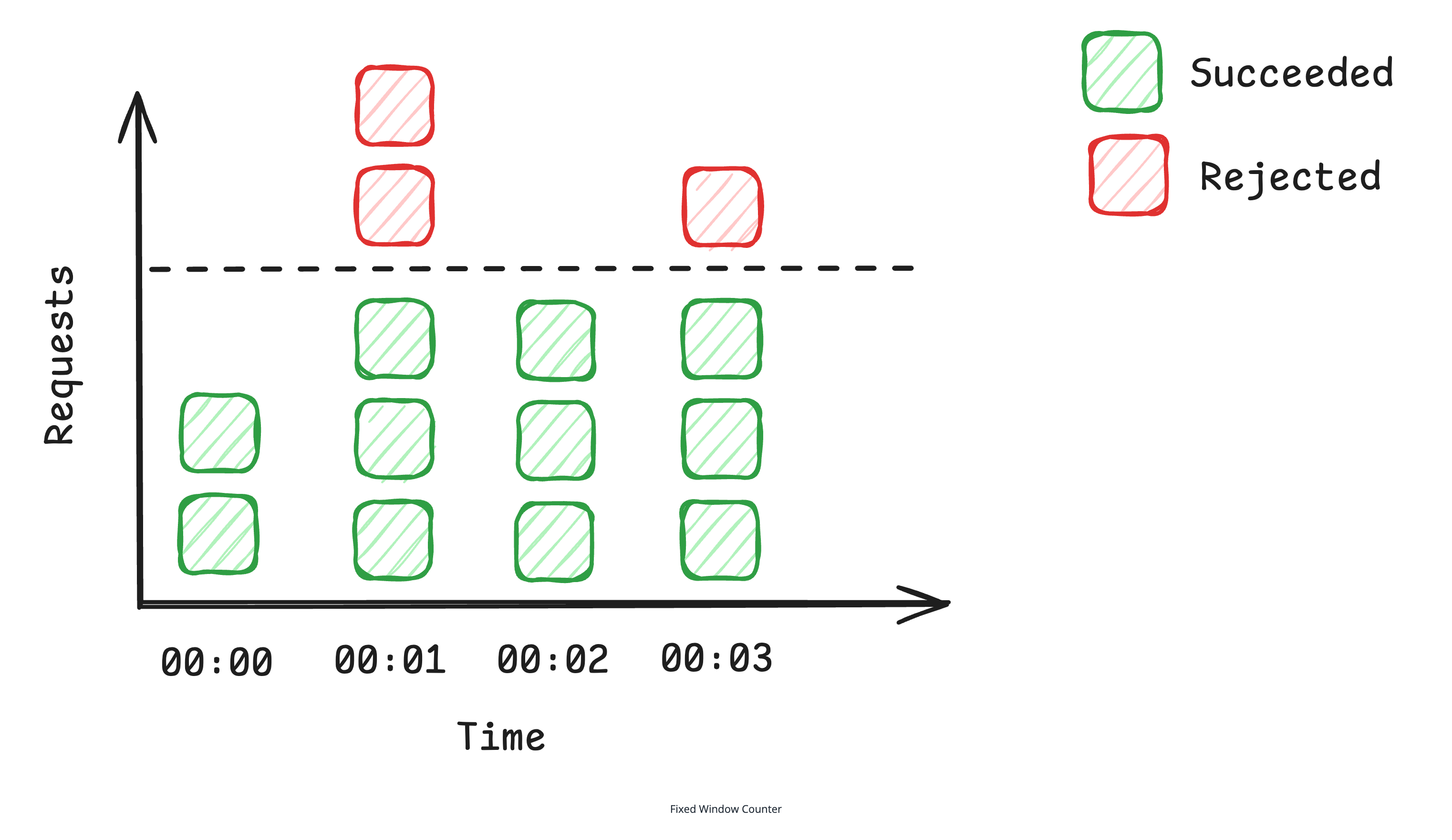 For example, with a 100 requests/minute limit, you might have windows from 12:00:00-12:00:59, 12:01:00-12:01:59, etc. A user can make 100 requests during each window, then must wait for the next window to start.